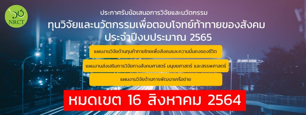 ประกาศรับข้อเสนอการวิจัยและนวัตกรรม ทุนวิจัยและนวัตกรรมเพื่อตอบโจทย์ท้าทายของสังคม ประจำปีงบประมาณ 2565