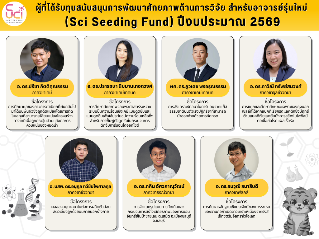 ผู้ที่ได้รับทุนสนับสนุนการพัฒนาศักยภาพด้านการวิจัย สำหรับอาจารย์รุ่นใหม่ (Sci Seeding Fund) ปีงบประมาณ 2569